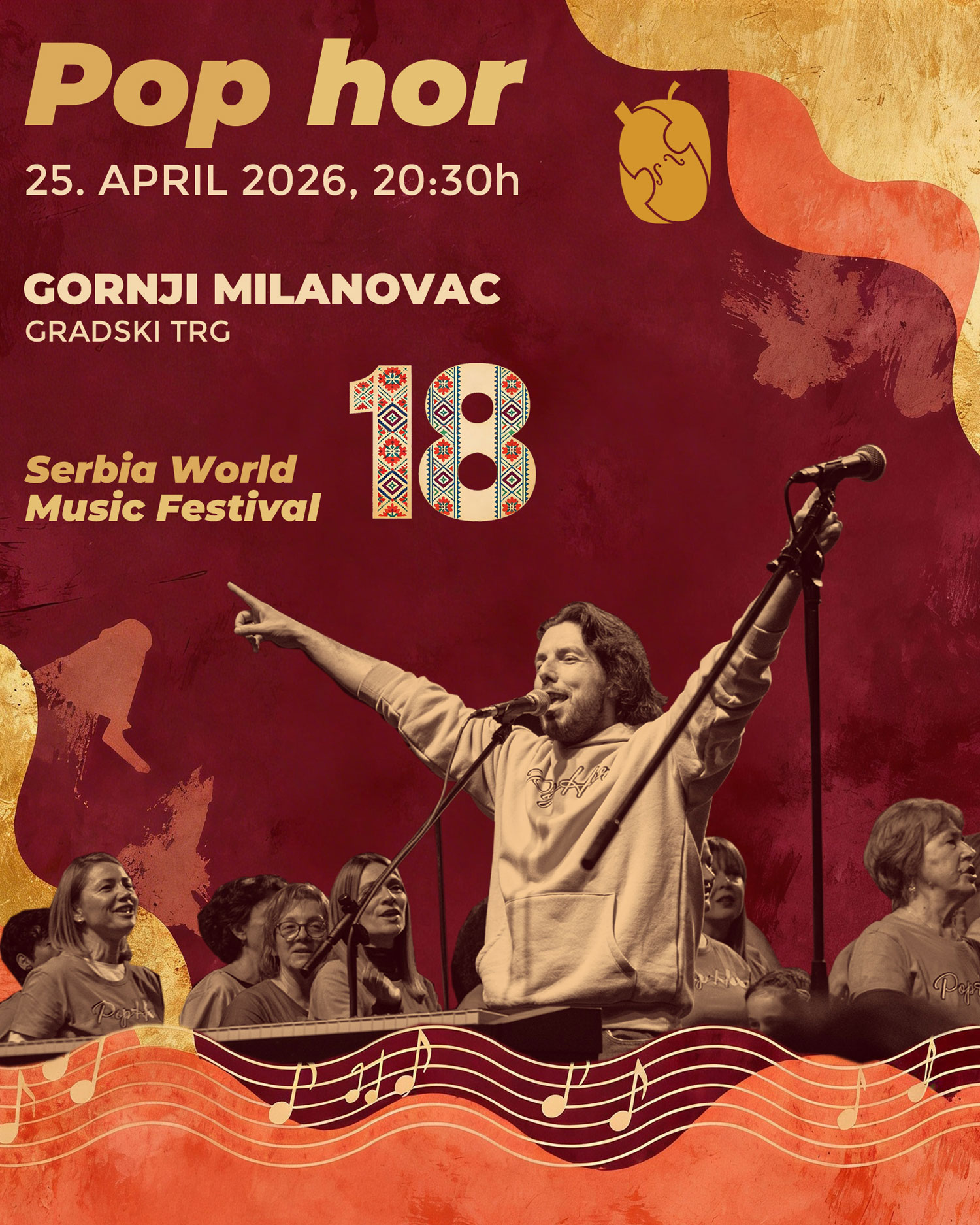 Festival svetske muzike u Srbiji ima za cilj, da pored niza koncerata Etno muzike na visokom umetničkom nivou, ujedini muzičare i ljude iz različitih zemalja bez obzira na kulturnu i religioznu pozadinu. U predstvaljanju bendova iz više zemalja, publika ima priliku da uživa u mešavini različitih vidova muzike, pre svega romske, kao i u zvucima nezaobilazne balkanske muzike, ali u ovom slučaju u potpuno novom svetlu. Program je upotpunjen i koncertima specijalnih gostiju festivala. Opština Gornji Milanovac je idealno mesto za održavanje ovog festival,a kako zbog istorije i kulture podneblja, tako i sa aspekta seoskog turizma koji želimo da predstavimo gostima i svetu. |